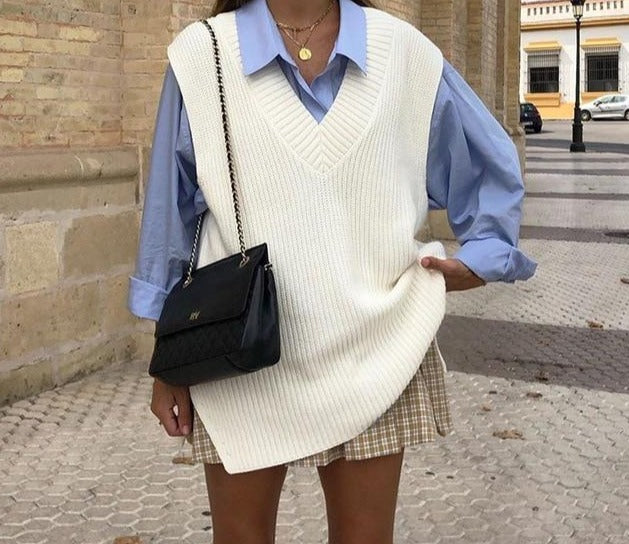 The sweater vest gets a reboot with this sleeveless knitted summer top. Relaxed fit will pair with skinny jeans or leggings. V-neck to show off your favorite lariat. Side slit detail to keep you cool day and night.
