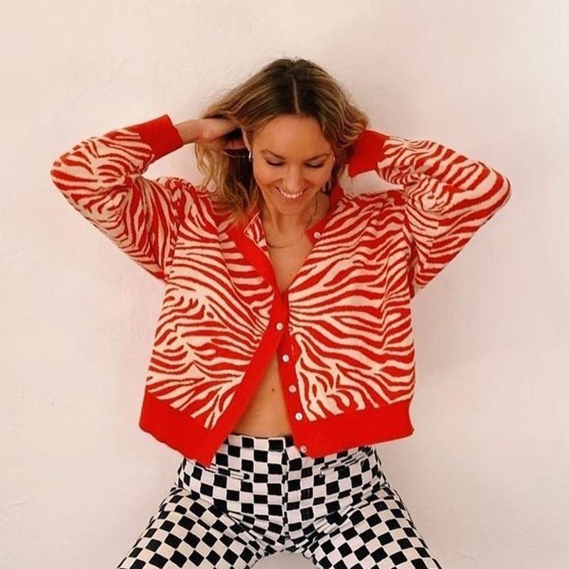 Who doesn't love a good zebra print? This women's cardigan sweater is anything but basic. Button front with solid etching frames the gorgeous zebra print sweater. Go bold and pair with a contrasting print or keep it simple and pair with a distressed jean to complete the look.