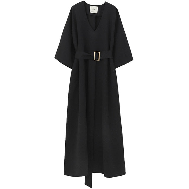 Yes you can dress up while staying comfortable! Relaxed fit dress that brings a modern take on the classic Kimona silhouette. Chunky belt for some added form. Angel sleeves and front pocket detail completes the comfy edit. Pair with your favorite ballerina flats or kitten heals.