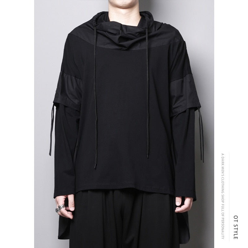 Urban chic and modern elegance comes together with this multi-dimentional men's shirt. Get a layered look with this short sleeve over long sleeve shirt. Cowl neck for added style and edge.
