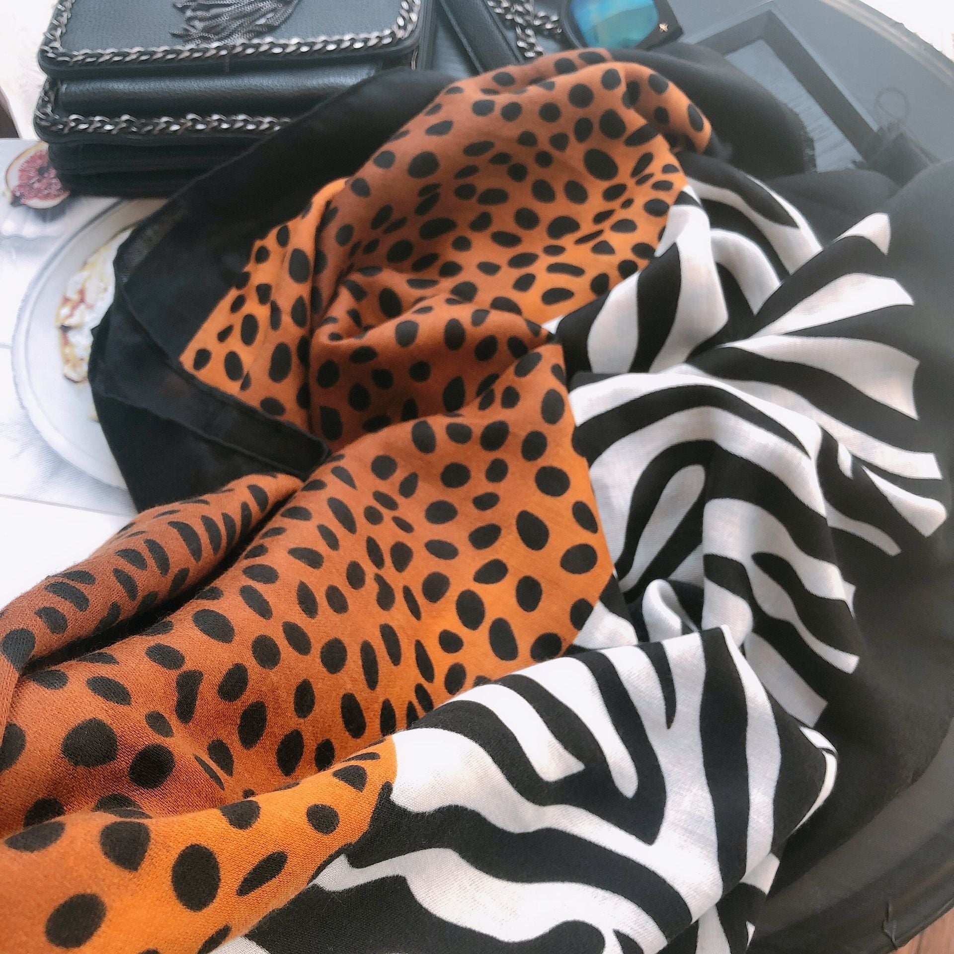 The perfect women's scarf for anyone who can't get enough of animal prints. Half cheetah print, half zebra print to stand out against all your coldweather ensembles.