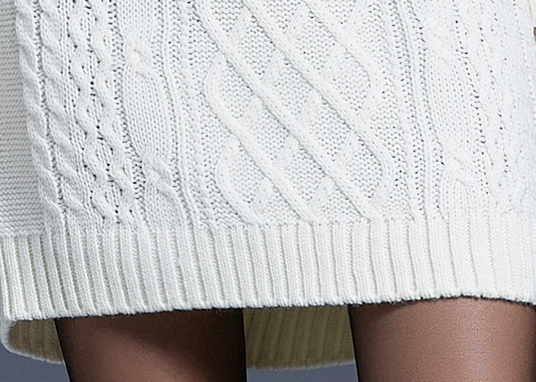 Who can resist a classic sweater dress for the winter months. Cable knit womens sweater dress has all the elements of your favorite sweater made into an elegant dress. Complete the look with classic hoops and a Chelsea boot.