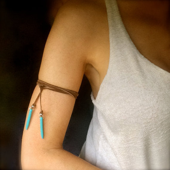 Designed for the navajo enthusiast, this lariat can drape long or double as a lariat and choker. Adds good juju with turquoise charms that add a pop of color to your summer ensembles.