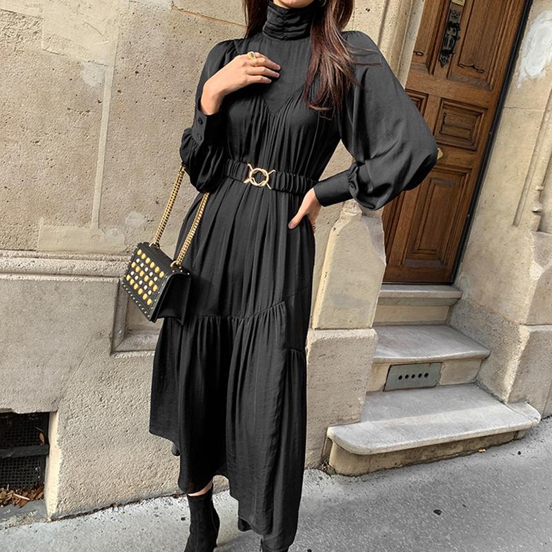 Dress season is here and this elegant piece is perfect for all your after work functions. Elegant bishop sleeves and victorian mockneck give this dress an old world feel. Pair with a bootie or classic pump to complete the look.