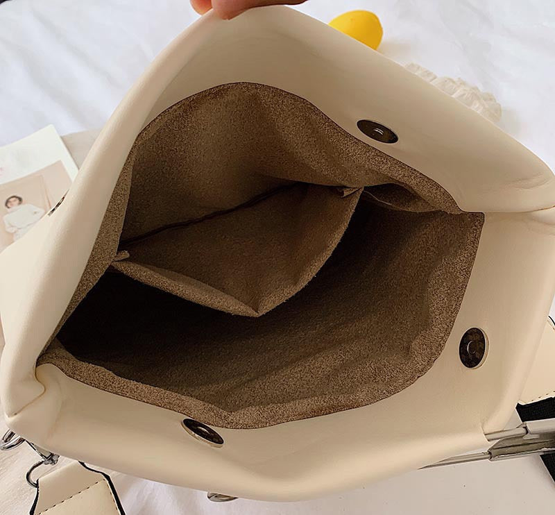 Tailor your weekend look with a classic black bag with a stylish twist. Foldover black crossbody bag with thick guitar straps and paperclip embellishment has a casual coolness with a touch of refinement.