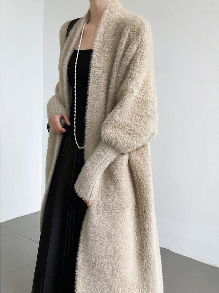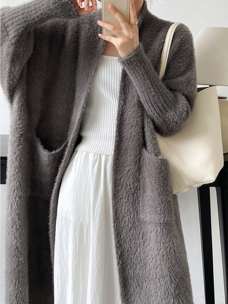 Super soft and fuzzy duster that will be your go-to for chilly winter days. Exaggerated cuffs add style and form to the classic women's sweater. A staple that will pair over dresses or any ensemble. Dress up with pumps or stay casual with your favorite fashion sneaker.